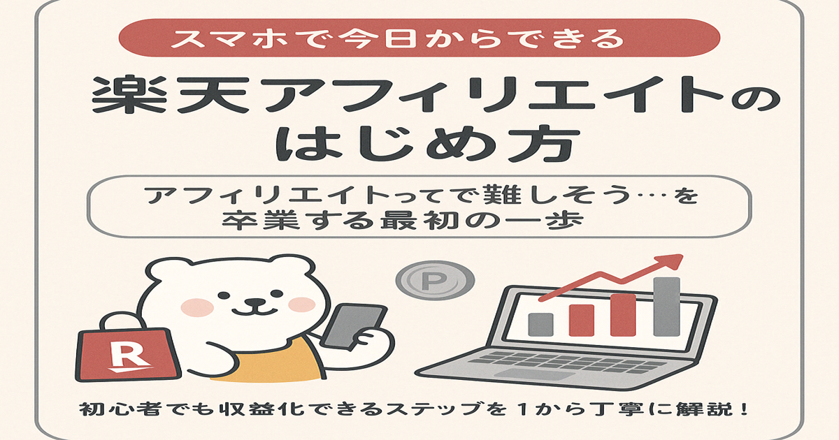 とはいえ、まずは「スマホだけでできる範囲」で始めてみて、慣れてきた段階で必要に応じてパソコンを使い始めるという流れで問題ありません。完璧な環境がなくても、始められるのが楽天アフィリエイトの強みです。